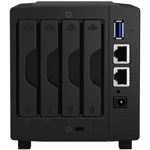 Le serveur DS419slim est un NAS cubique à quatre baies qui offre un accès et un partage de fichiers en déplacement, tout en sécurisant le transfert de fichiers. Intelligent et fiable, il est un partenaire idéal : il vous permet d’organiser toutes vos photos, vidéos et fichiers.