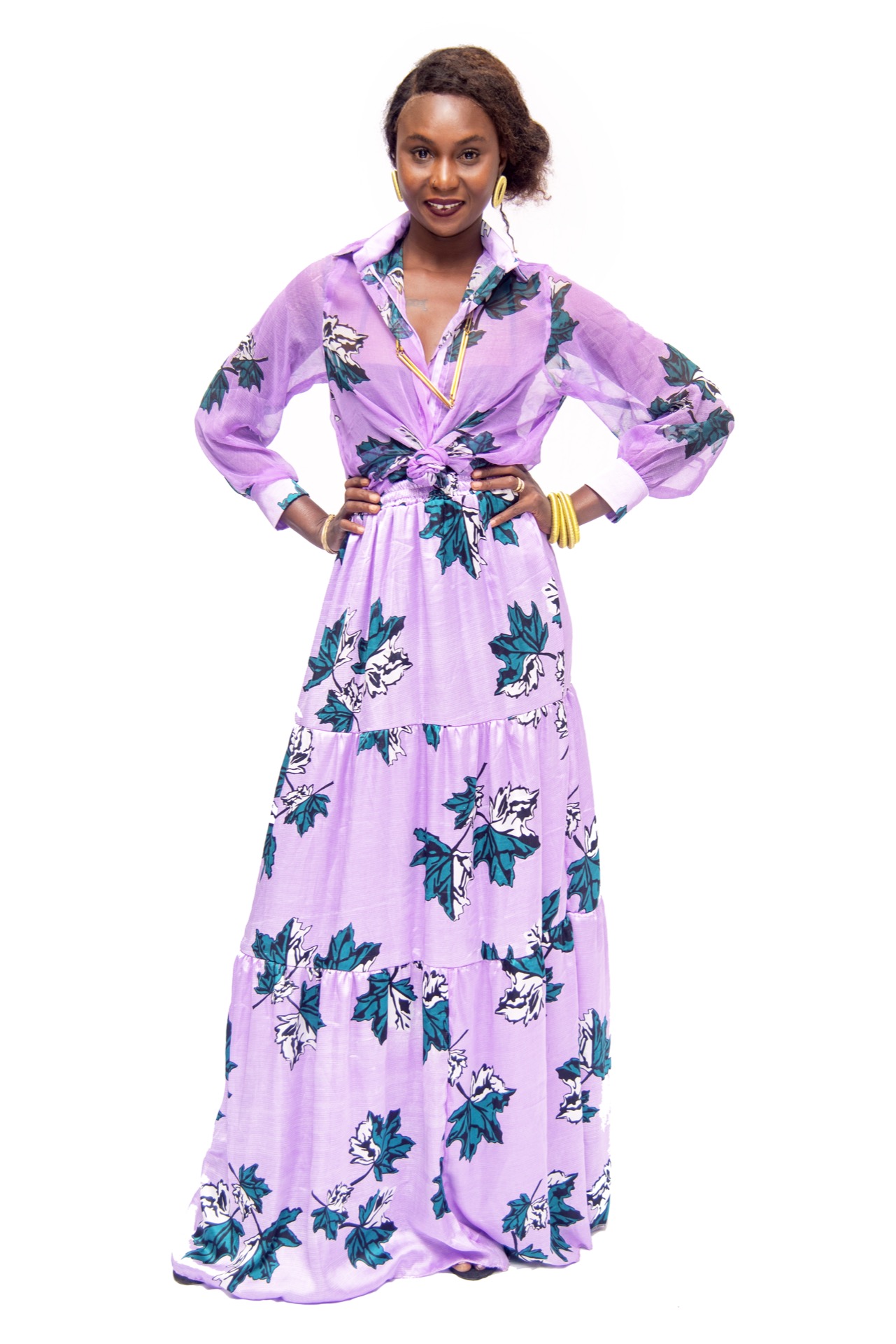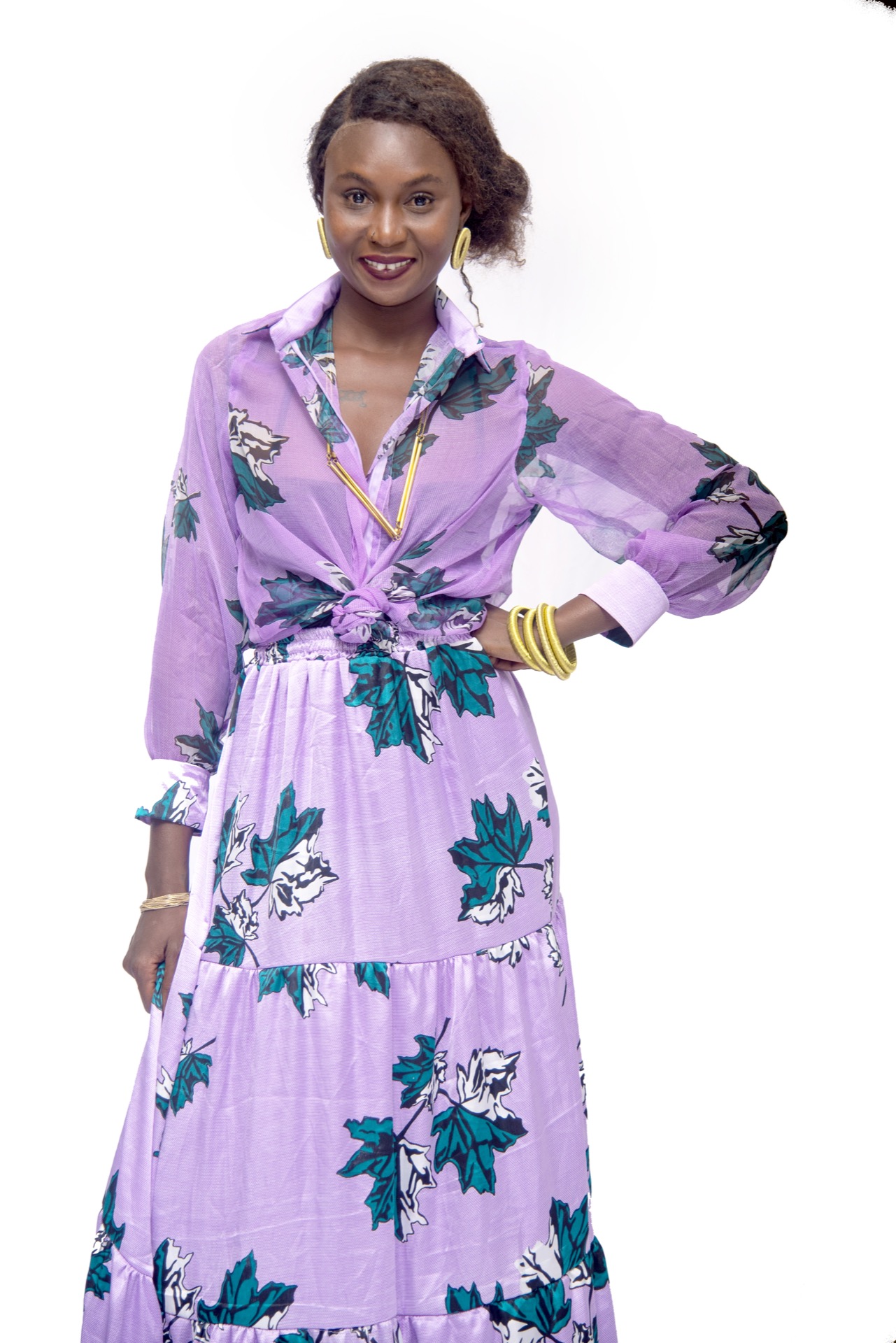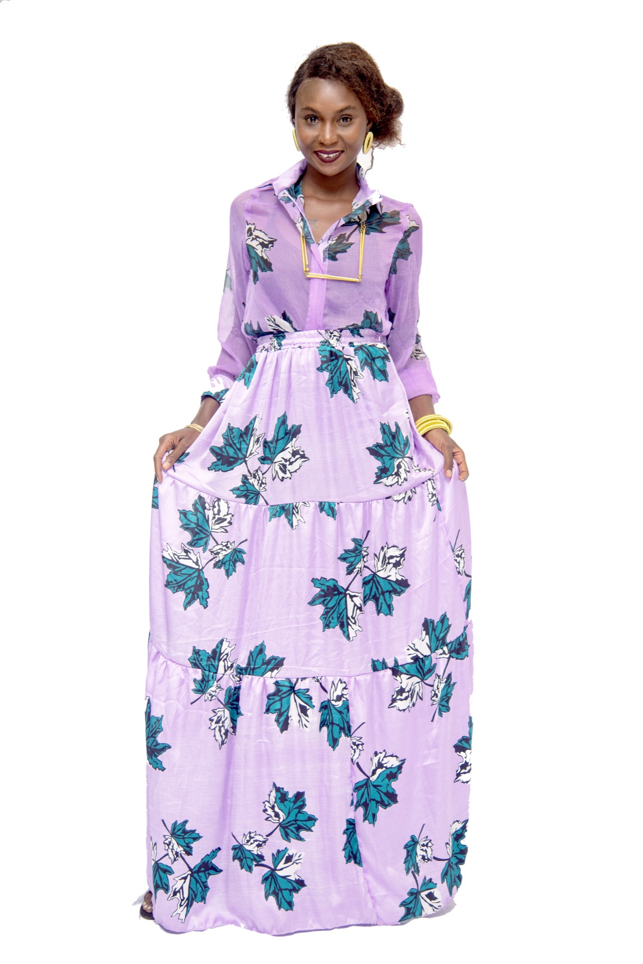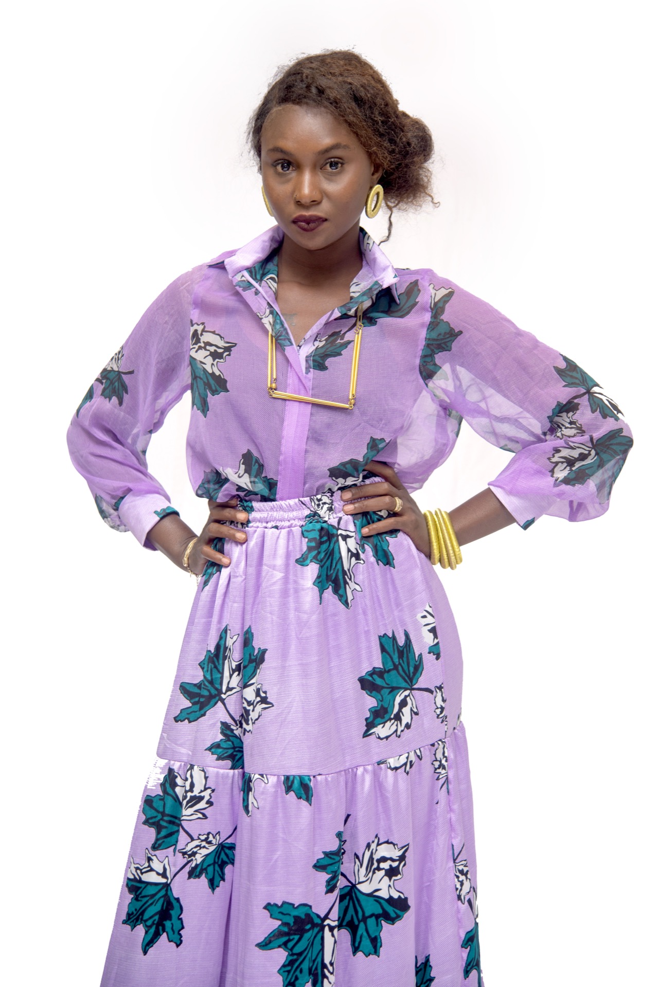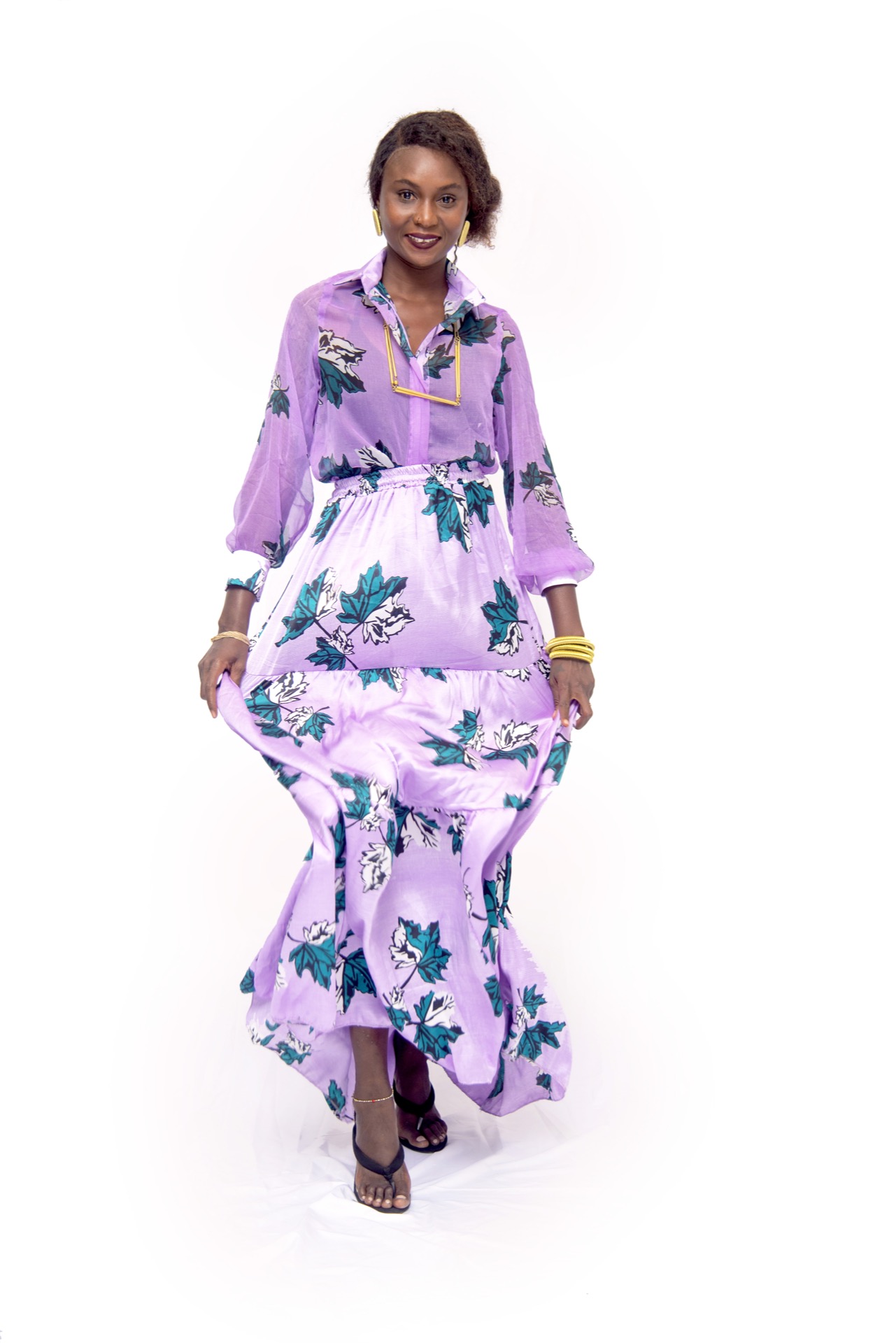 Ensemble Jupe paysanne en soie imprimée et chemisier en chiffon de soie imprimée