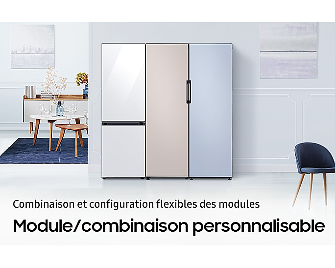Personnalisez et combinez les réfrigérateurs pour les adapter à votre style de vie. Vous pouvez l’utiliser comme un module unique avec une porte complète. Cependant, si vous désirez plus d’espace, vous pouvez facilement combiner deux modules avec deux portes complètes* ou une porte complète et deux portes du côté opposé**.