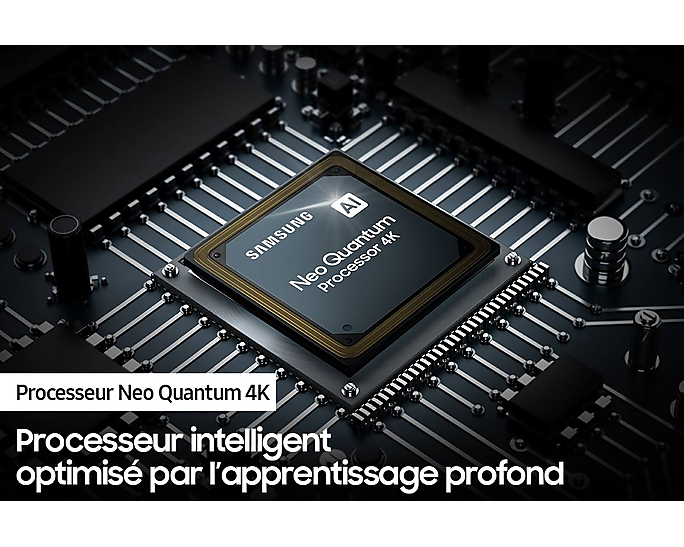 Le puissant processeur Quantum de Samsung avec apprentissage profond crée l’expérience la plus précise et la plus adaptative que vous puissiez imaginer. Scène par scène, le processeur optimise les conditions de visionnement et améliore votre contenu. L’upscaleur IA 4K vous garantit une résolution 4K complète à chaque fois.
