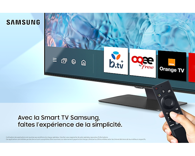 *Le Gaming Hub est disponible uniquement sur les TV de gamme 2022 (Q60B et +). Une connexion Internet requise. Les applications sont éditées par des tiers et sont susceptibles d’être soumises à un abonnement payant et de changer, d’évoluer ou d’être arrêtées selon les choix et décisions de leurs éditeurs respectifs. Le streaming musical tout en jouant à des jeux et l’upscalling par l’IA sont disponibles sur à partir des modèles Q70B et + (non disponible en Q60B, BU8500, BU8000)