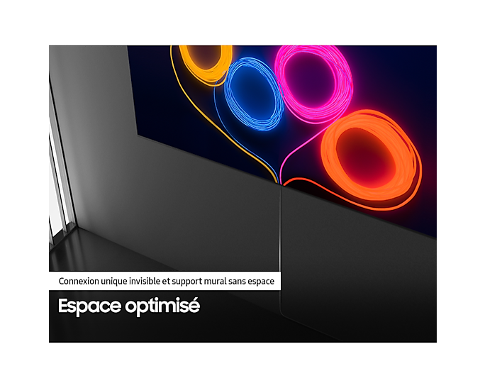 Fixez votre téléviseur au ras du mur pour un look minimaliste avec un câble presque invisible qui relie tous vos appareils externes pour éviter d’encombrer votre installation.